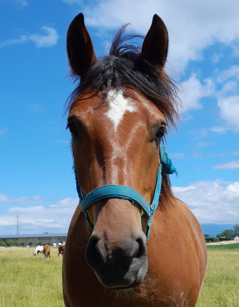 Clin d’oeil du Grand Pré est un Franches-Montagnes née en 2019. Il est né sur le domaine, c’est le fils d’Helena qui était une de mes juments de thérapie. Il fut débourrée à 2 ans et demi à la monte et à 4 ans à l’attelage.